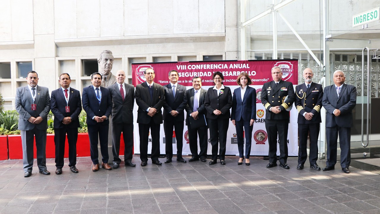 En el marco de las actividades celebratorias por el 75.º aniversario de creación institucional del Centro de Altos Estudios Nacionales (CAEN) y con la asistencia de más de 350 participantes, entre autoridades del sector público y privado, representantes de las Fuerzas Armadas, instituciones académicas, cuerpo diplomático, investigadores, estudiantes y egresados, se llevó a cabo la VIII Conferencia Anual de Seguridad y Desarrollo (CASEDE 2025) en la sede de la Biblioteca Nacional del Perú.